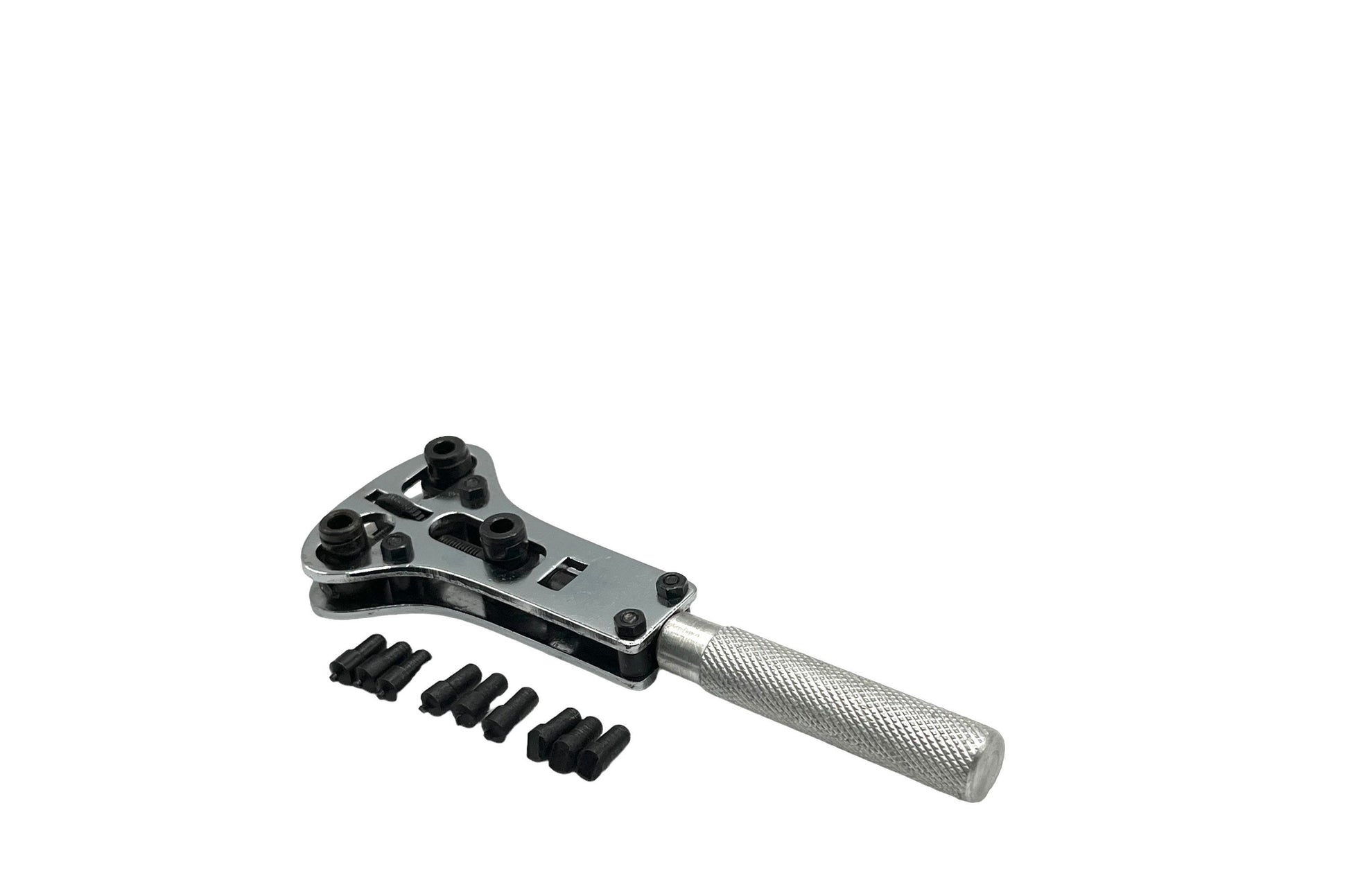 Economy waterproof watch case opening and closing tool. For watch cases Ø20mm - Ø40mm. Includes 3 sets of 3 spare ends for round, flat and toothed watch cases.