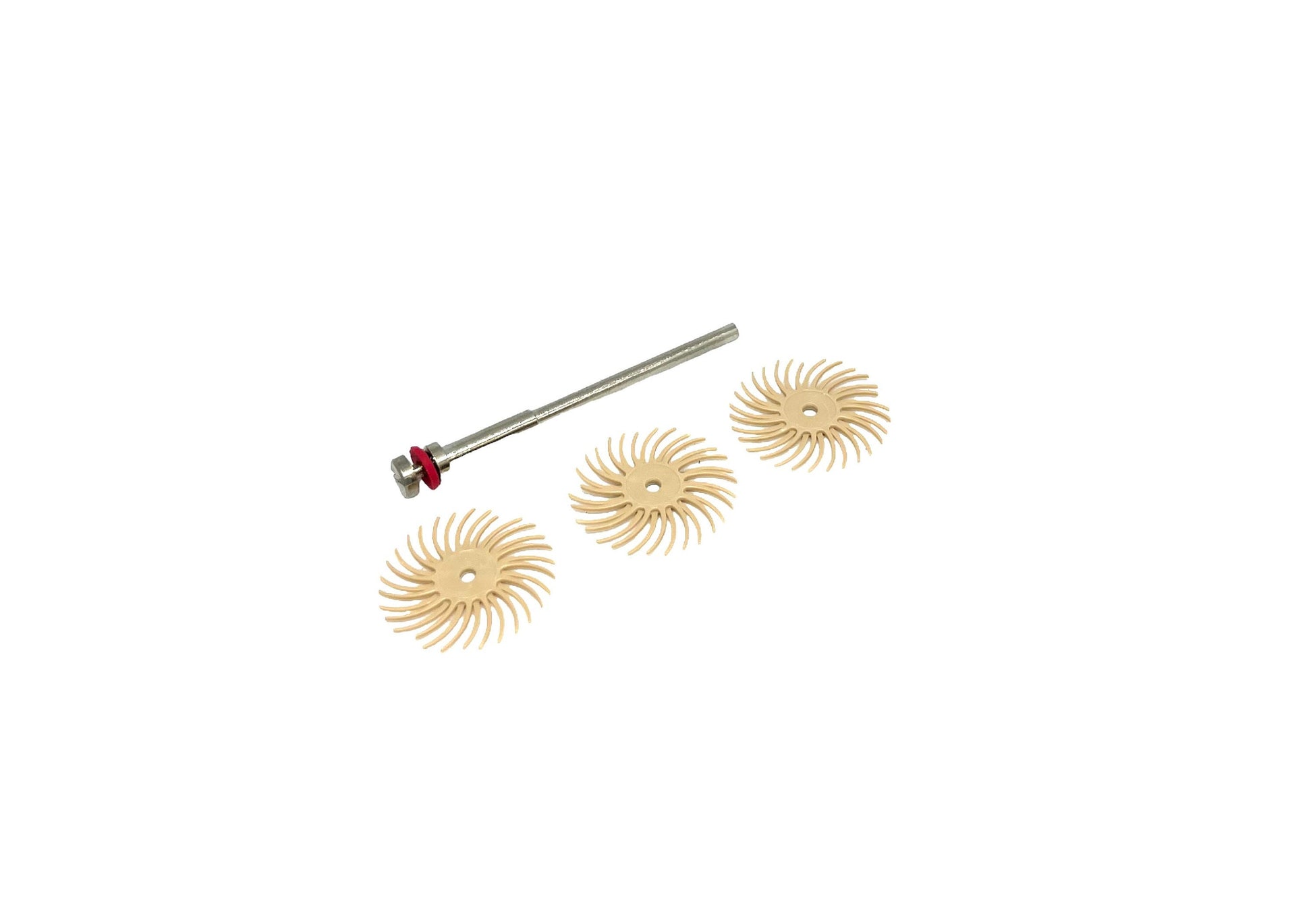 Radial discs are made of grit impregnated plastic, they produce a uniform finish throughout their life with no mess as no compound is necessary.