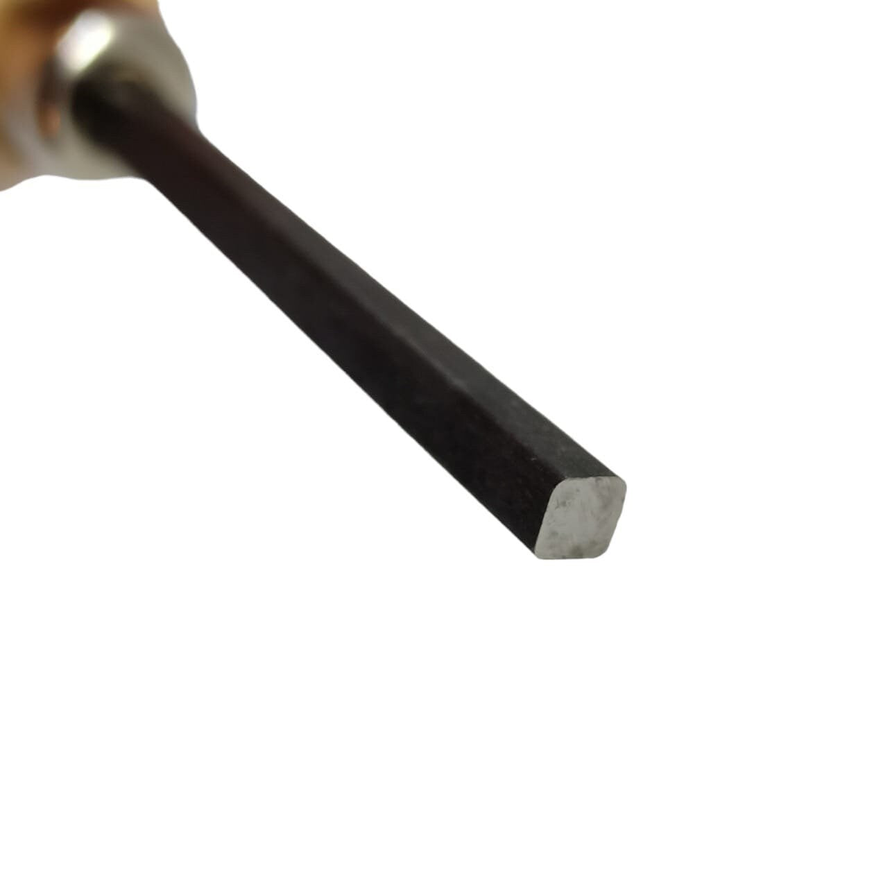 Made from a soft metal to help prevent damage, and with a wooden handle, this tool is employed to push metal of a setting over a stone.