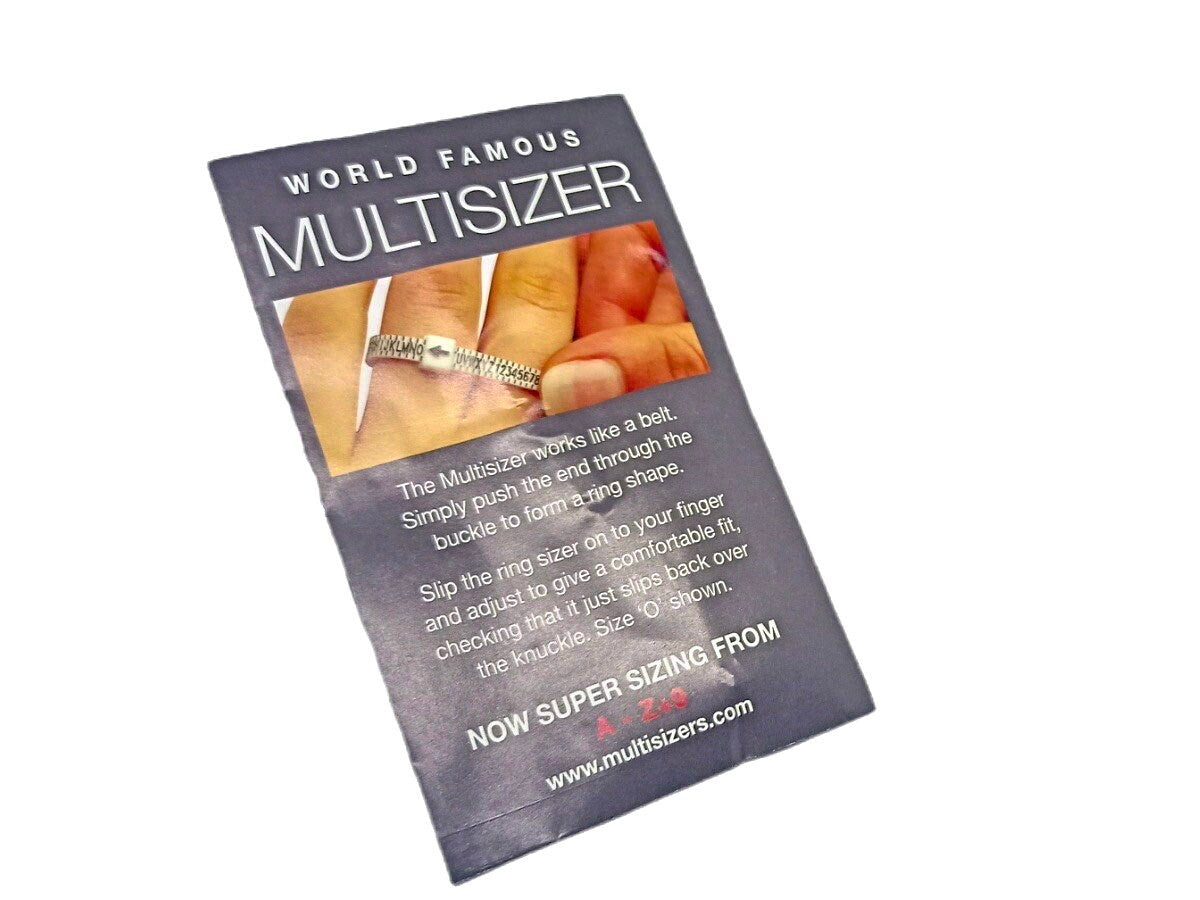 This plastic ring gauge is ideal for self-finger sizing. Each gauge is packaged individually in an envelope, which gives instructions for use. The ring gauge is used like a cable tie, forming a ring and then placing it over the finger. Adjust until comfortable, then just read your size. This ring gauge is marked with British Ring Sizes A–Z.